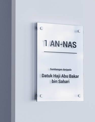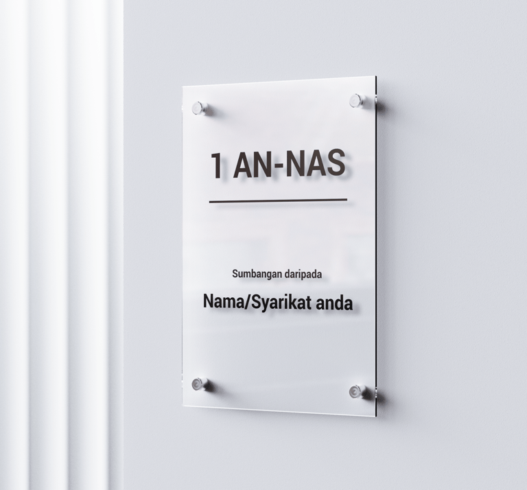 Infaq unit bangunan bermula RM140,000 per unit. Satu plak khas (recognition plaque) dengan nama/syarikat anda akan diletakkan di ruangan tersebut.